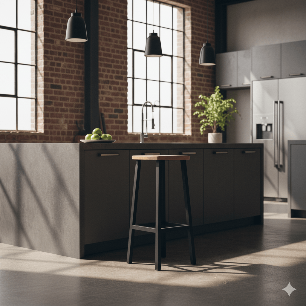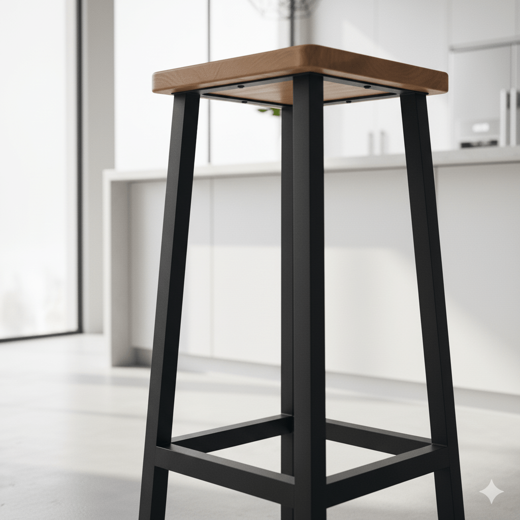 Este banco fue diseñado específicamente para barras de cocina, islas o ambientes de bar, con una altura de 68 cm que garantiza una postura cómoda y ergonómica. Su diseño industrial es una declaración de estilo que combina funcionalidad y robustez.